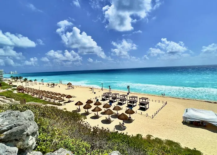 This beachfront Mar Azul Cancun apartment lies next to La Isla Shopping Village.
